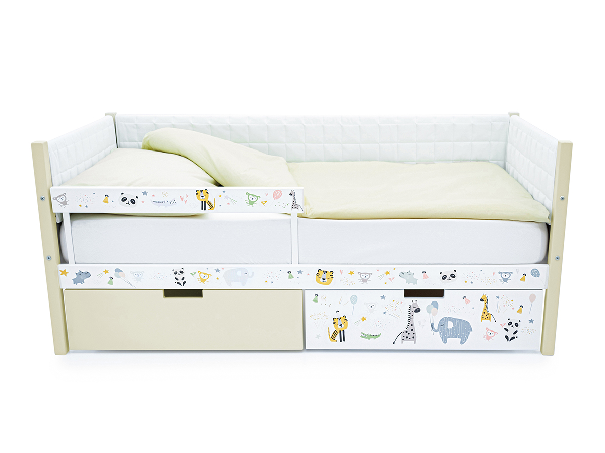 - Кровать-тахта Svogen мягкая с ящиками и бортиком с фото бежевый/зверята