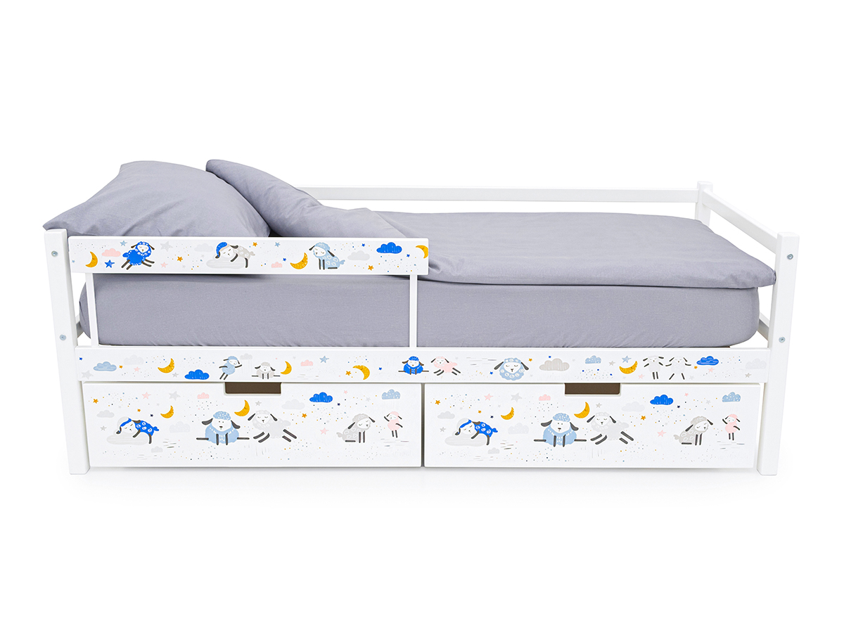 Кровать-тахта Svogen с ящиками и бортиком с фотопечатью белый/барашки