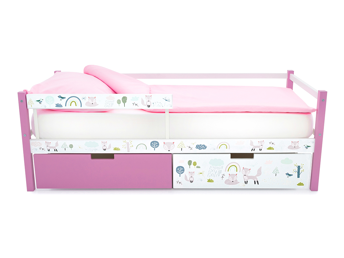 Кровать-тахта Svogen с ящиками и бортиком с фотопечатью лаванда/лисята