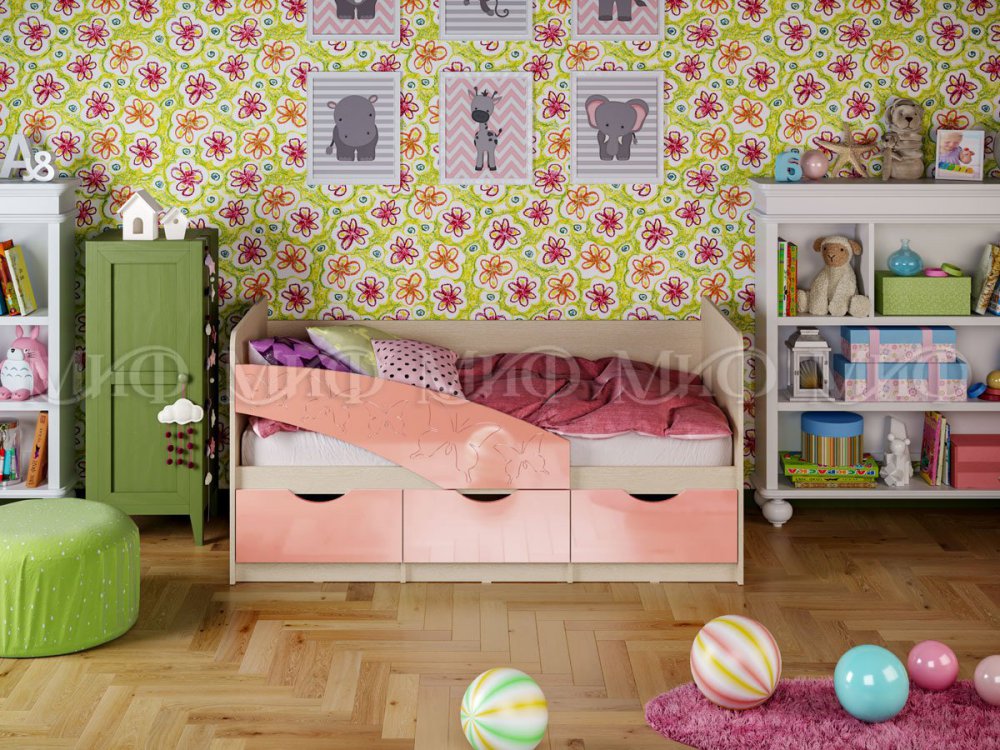 - Кровать Бабочки Розовый металлик