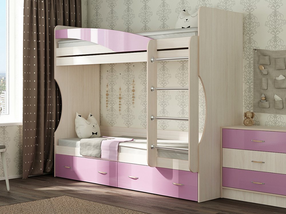 - Кровать двухъярусная Буратино розовая