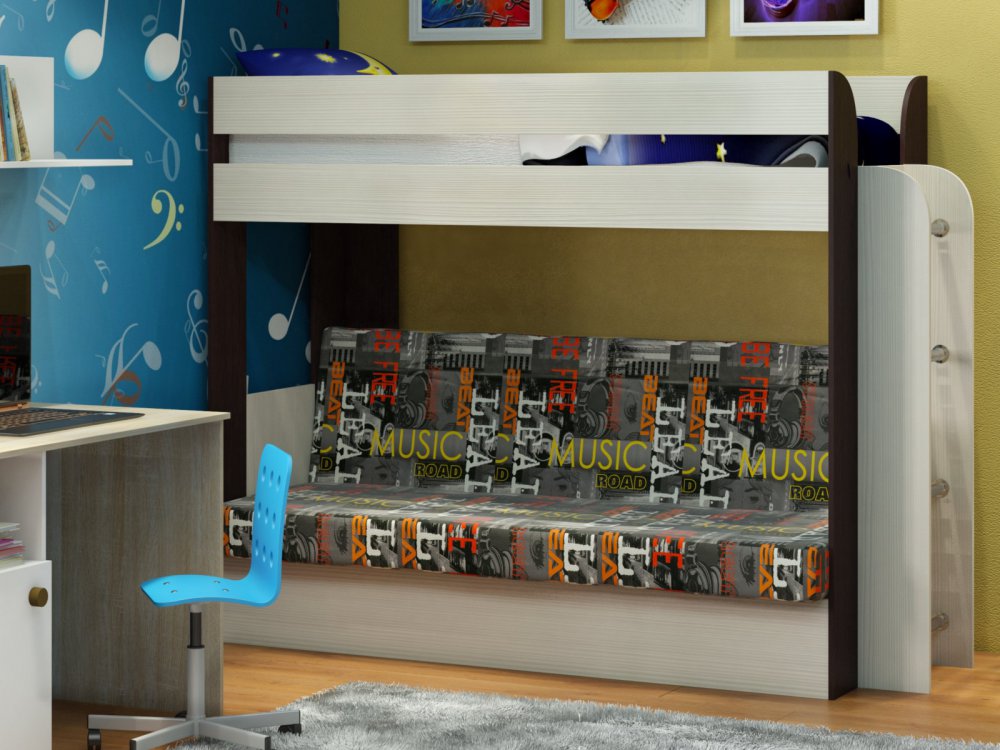 - Кровать двухъярусная Карамель 75 венге-музыка