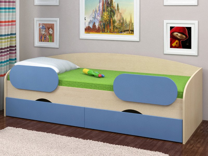 Кровать Соня 2 дуб молочный-голубой