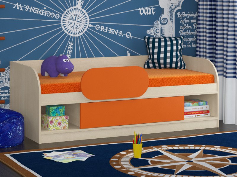 Кровать Соня 4 дуб молочный-оранжевый