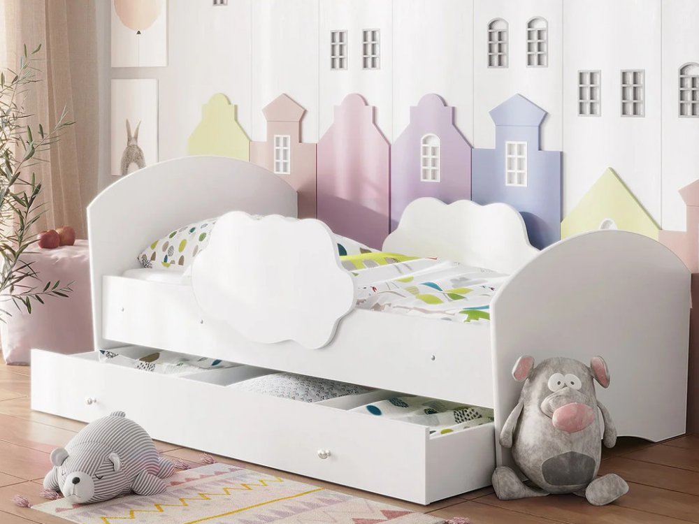 - Кровать Тучка с бортиками и ящиком белая