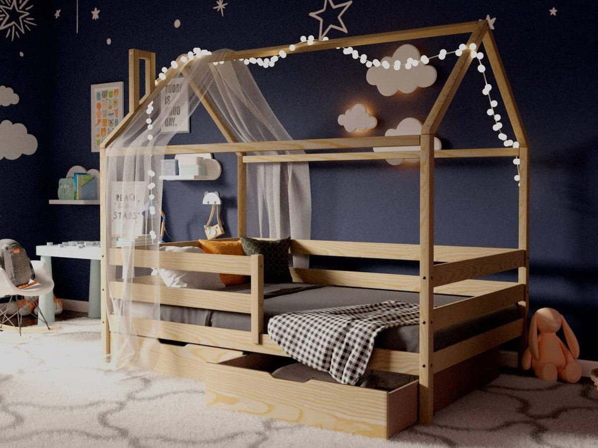 - Кроватка-Домик без покраски 80х190 см с ящиками