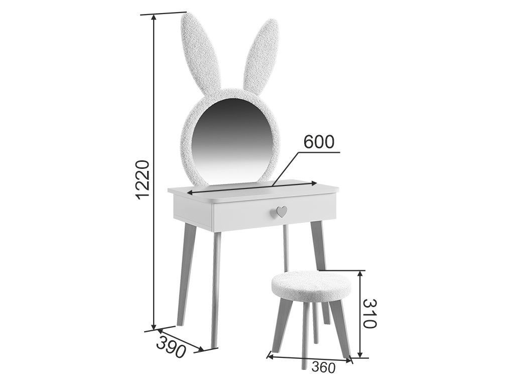 Столик-трюмо с ящиком: 1220 х 600 х 390 мм.