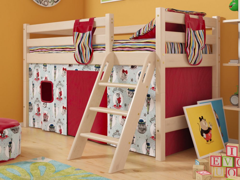- Низкая кровать Соня с наклонной лестницей