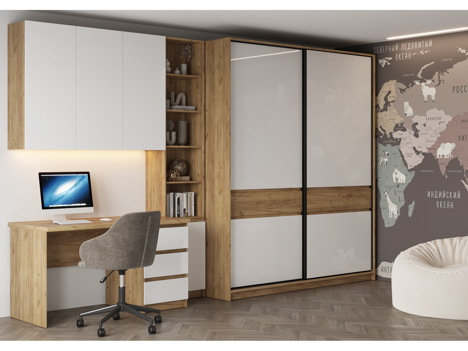Рабочая зона Бостон МДФ белый