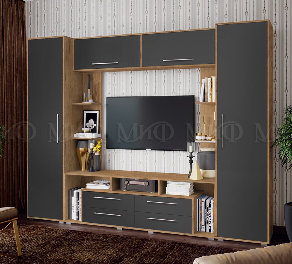 - Гостиная Гармония Графит Софт, Дуб Крафт