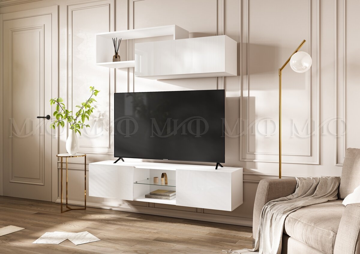 Цена за комплект: Тумба ТВ подвесная , Полка 2-х ярусная