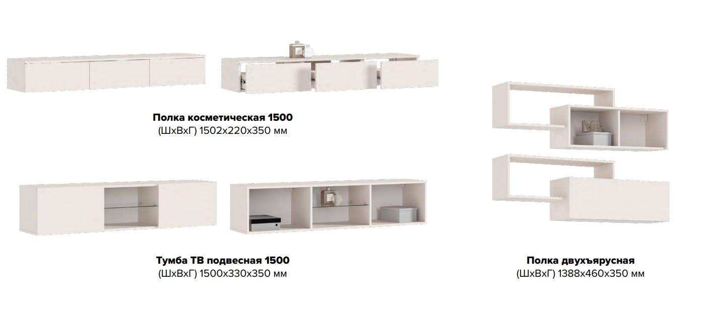 Цена за комплект: Тумба ТВ подвесная , Полка 2-х ярусная