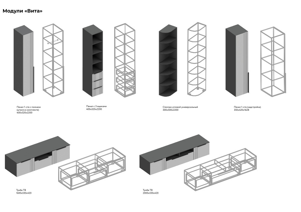 Цена за комплект: Тумба ТВ 2000, Пенал (надстройка) (2шт), Полка настенная №1, Пенал с полками (2шт)