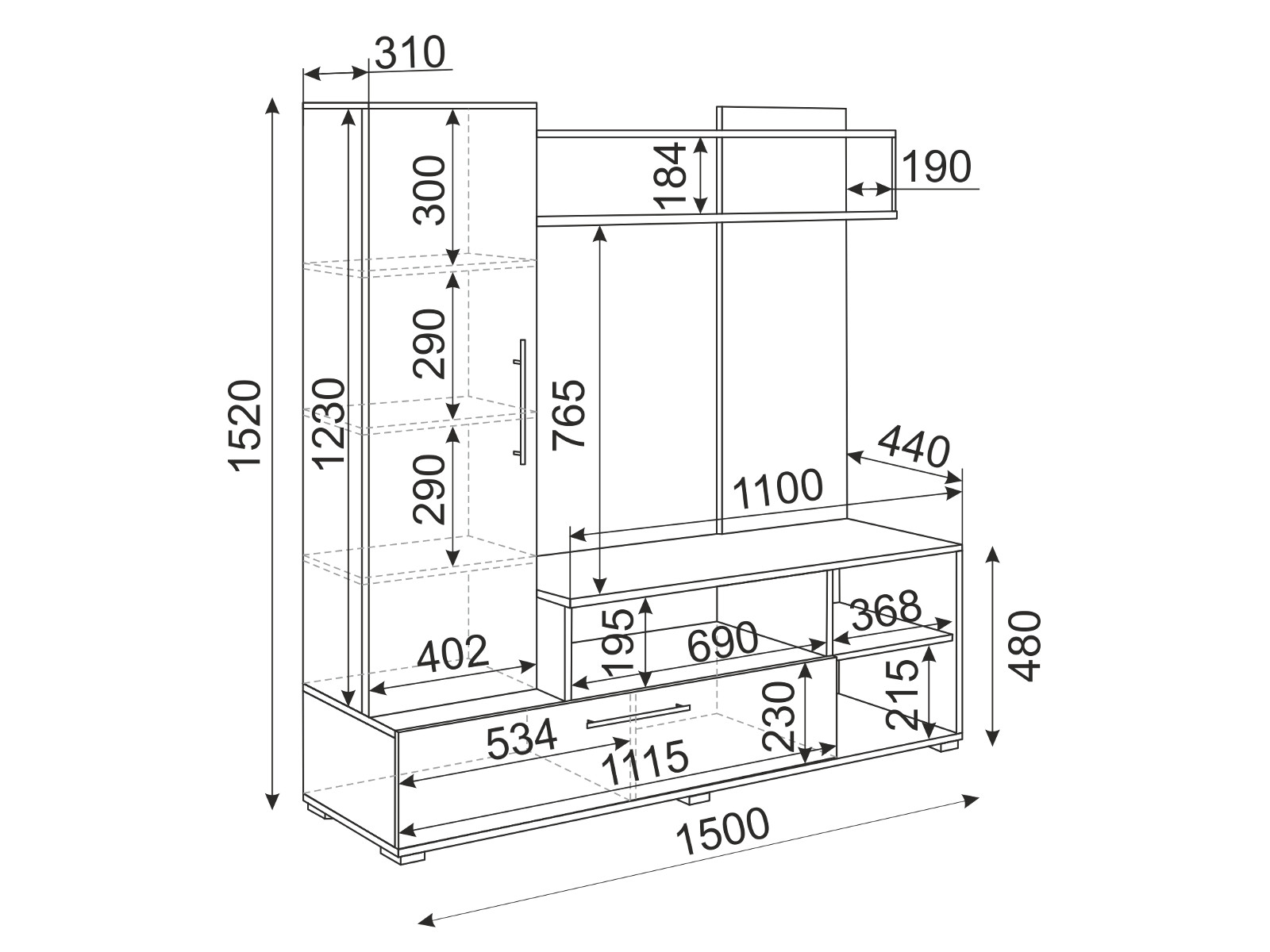 Габариты (ШхГхВ): 1500х440х1520 мм
