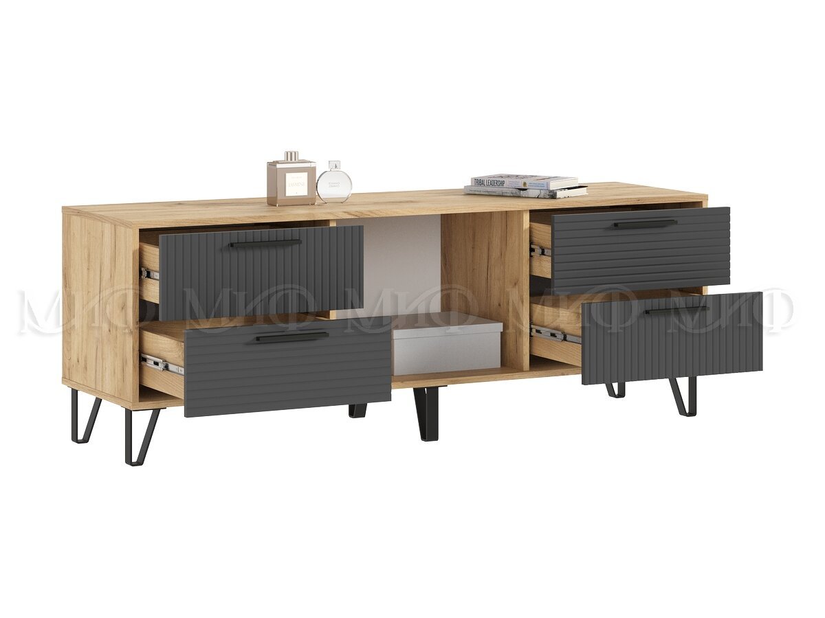 - Тумба ТВ (1500) Флэш Браш Графит, Дуб Крафт