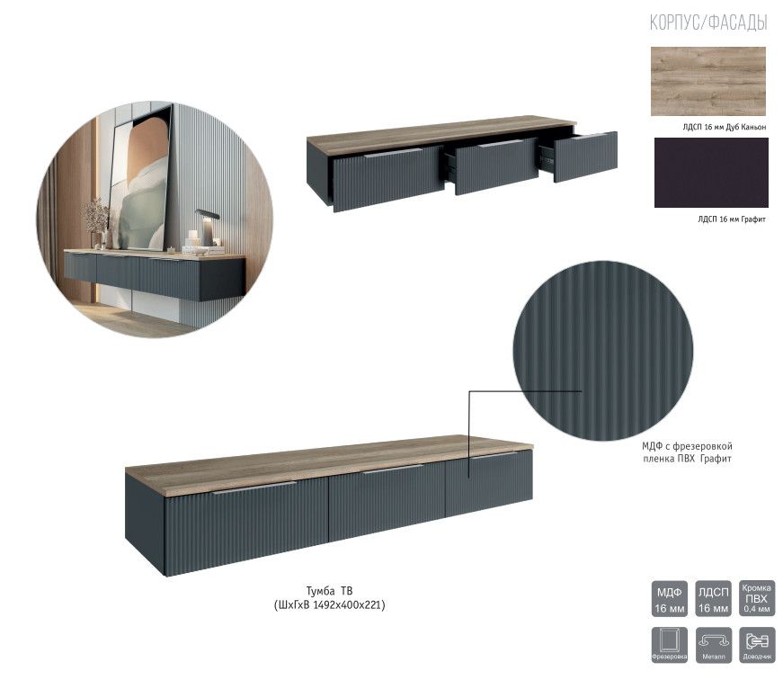 Цвет: графит/дуб каньон