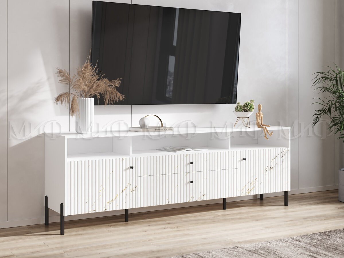- Тумба ТВ (металл) Оливия Мрамор Золото, Белый
