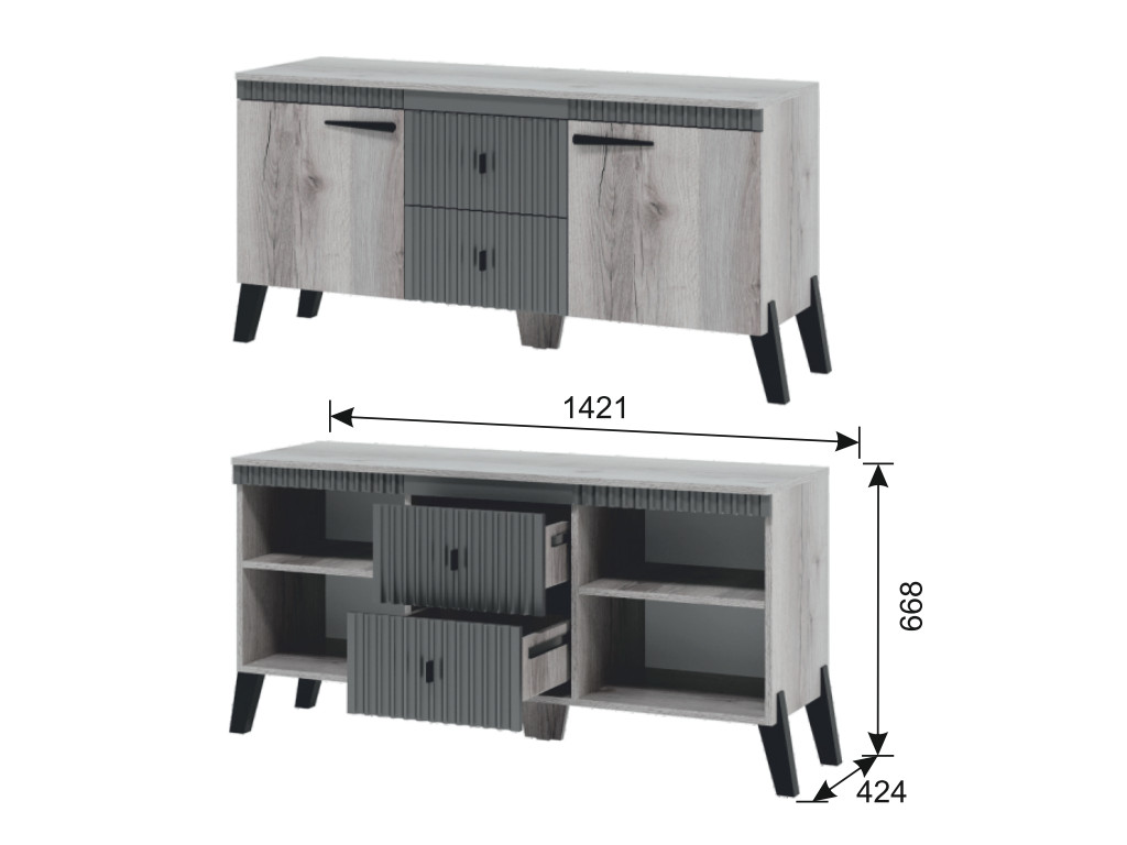 - Тумба ТВ с ножками Ольга 3 дуб делано