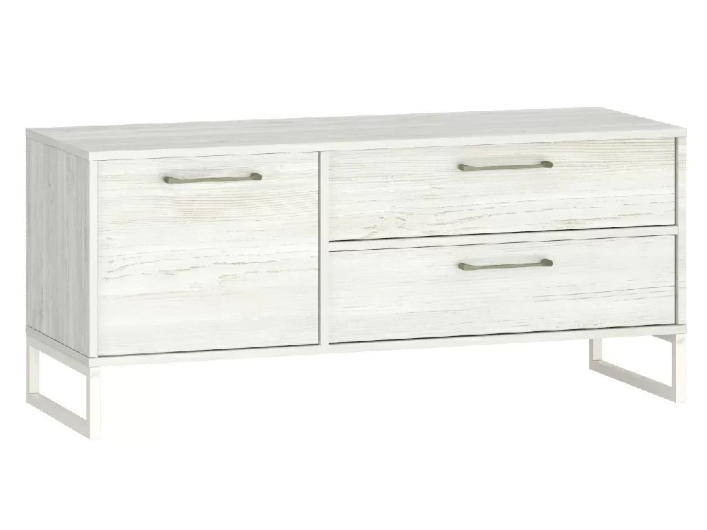 Тумба состоит из 2-х выкатных ящиков, шкафчика на петлях с доводчиком, и имеет универсальную сборку.