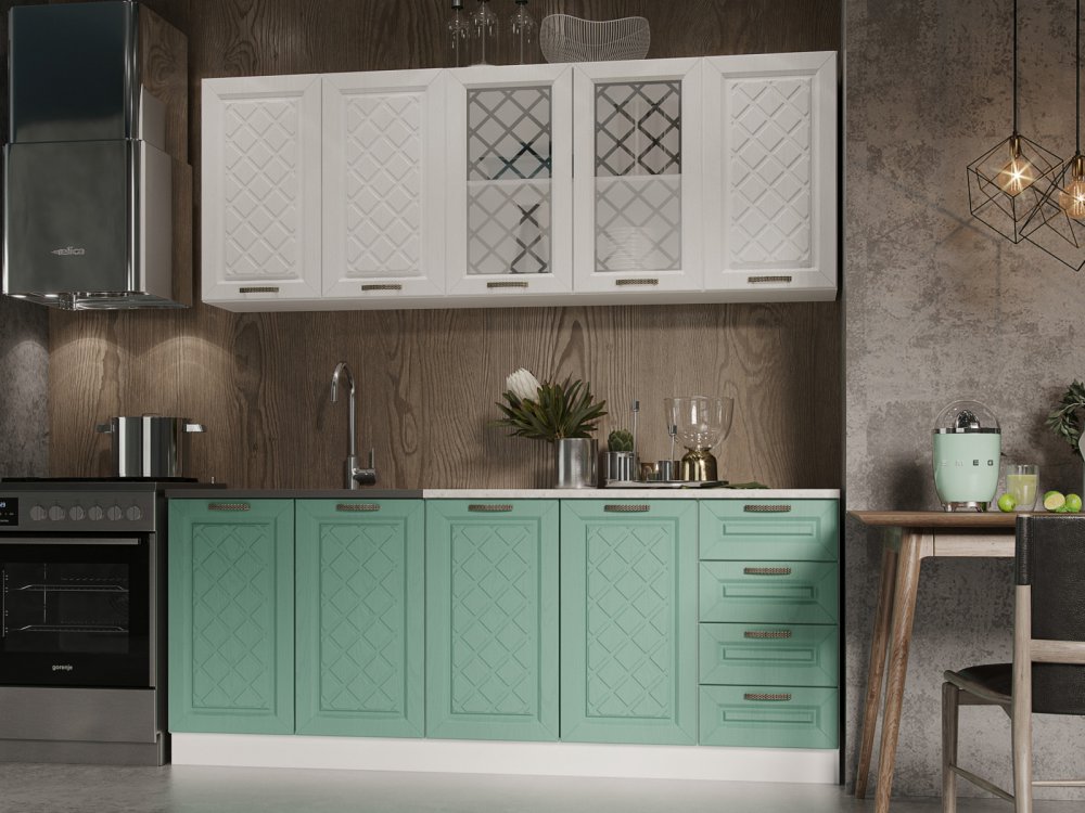 Кухня Агава МДФ 2000 акация белая-мята