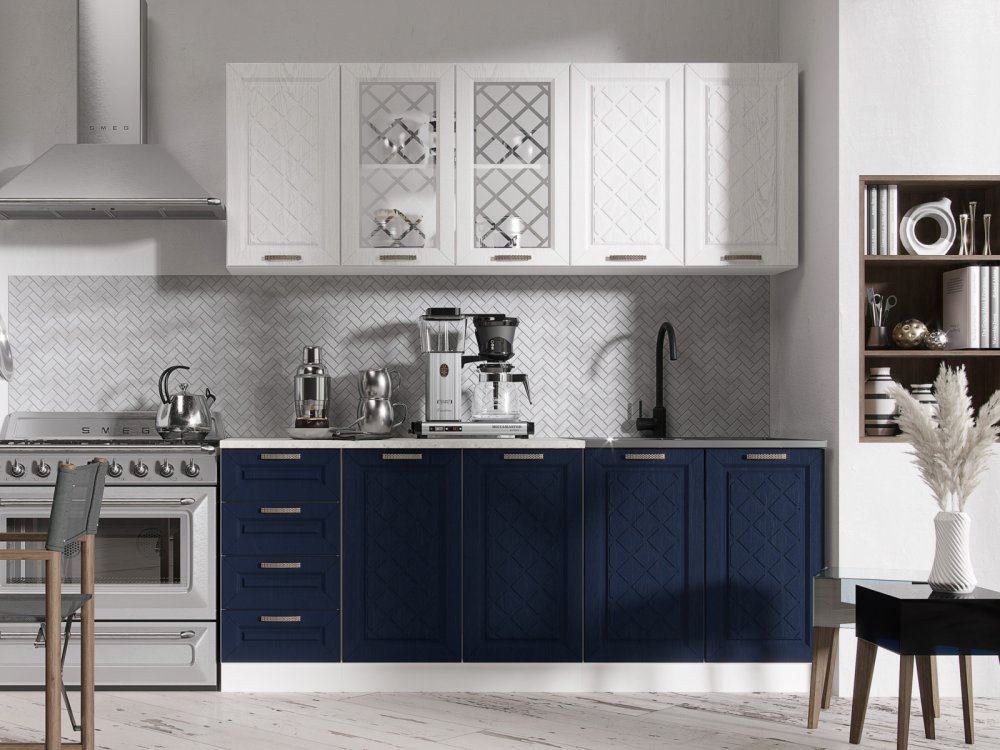 Кухня Агава МДФ 2000 акация белая-сапфир