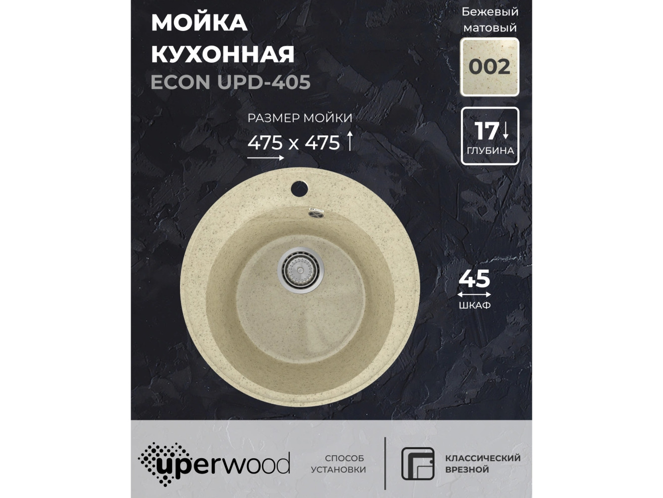 - Кухонная мойка Uperwood ECON UPD-405-002 бежевая матовая