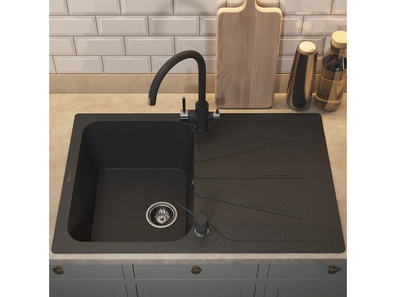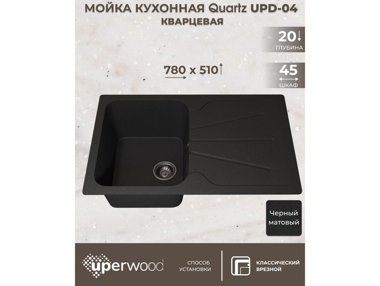 - Кухонная мойка Uperwood Quartz UPD-04-04 черная матовая