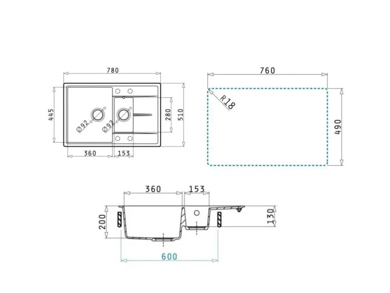 - Кухонная мойка Uperwood Quartz UPD-05-04 черная матовая
