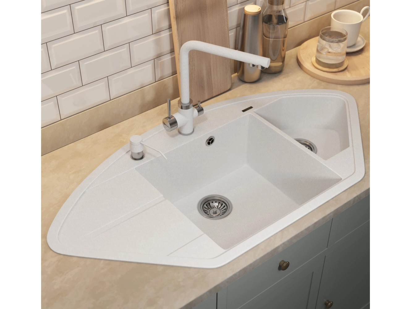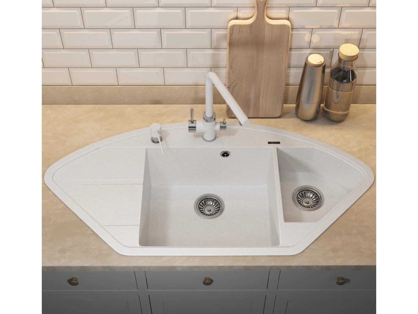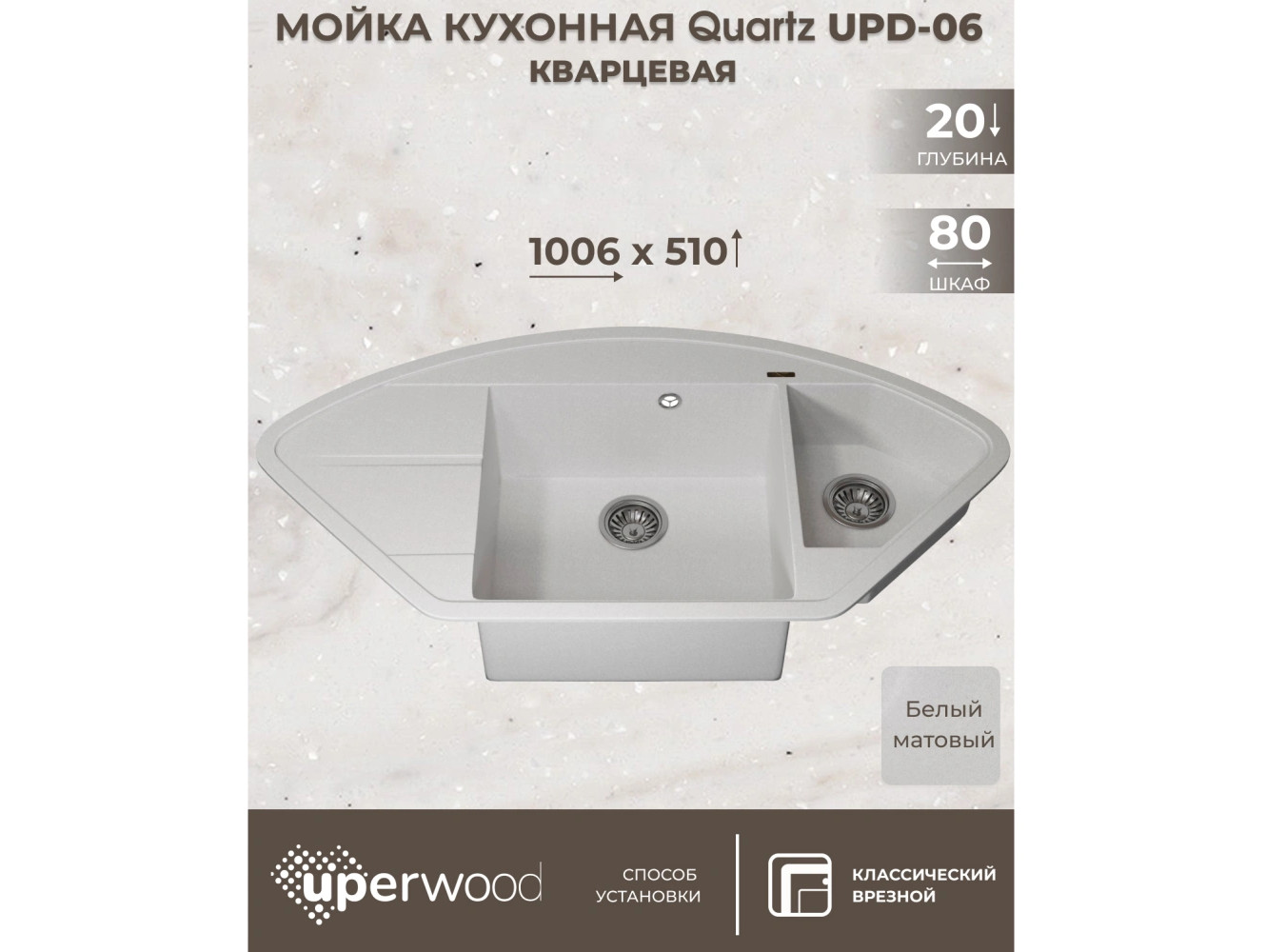 - Кухонная мойка Uperwood Quartz UPD-06-01 белая матовая