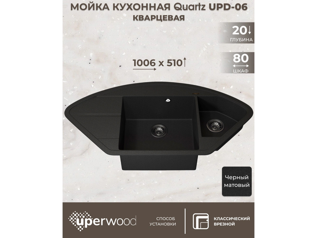 - Кухонная мойка Uperwood Quartz UPD-06-04 черная матовая