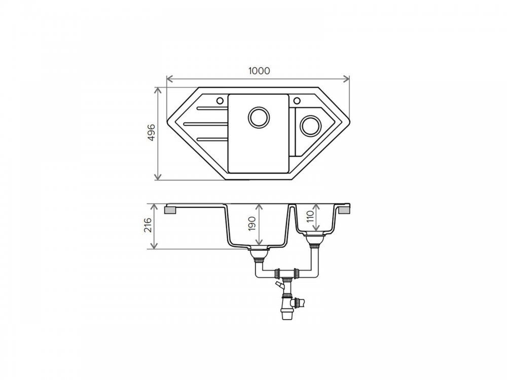 Форма мойки: Угловая, Две чаши