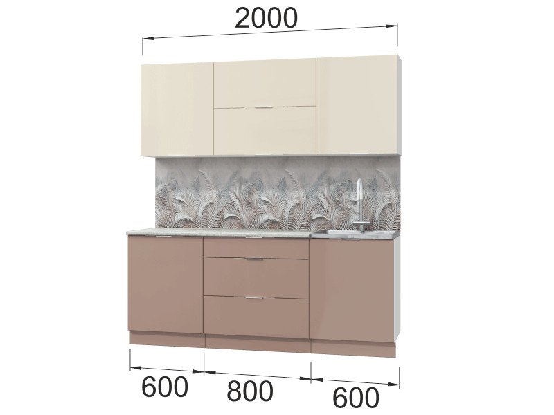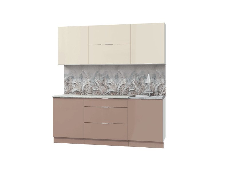 - Фасад: МДФ + пленка ПВХ (шкафы настенные - "Ваниль глянец", шкаф-столы кухонные - "Кофе с молоком глянец"