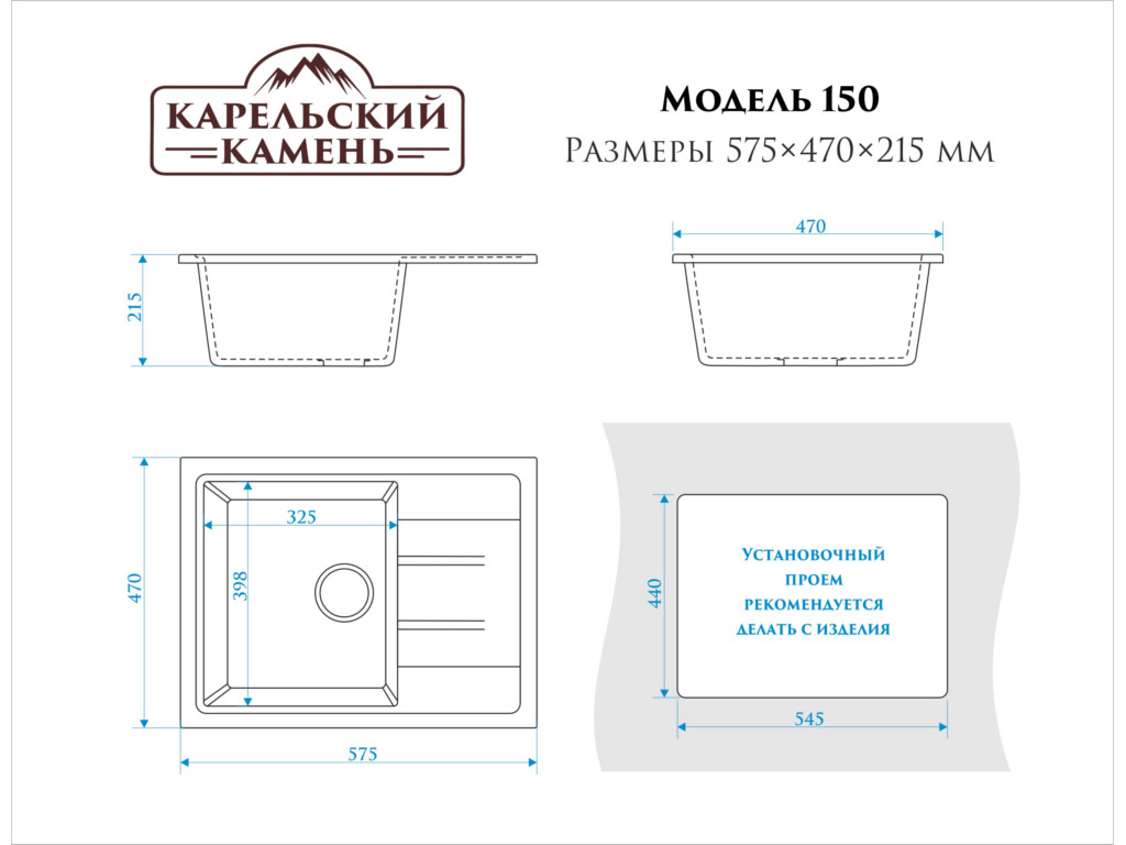 - Мойка врезная Карельский камень модель 150 Песочный