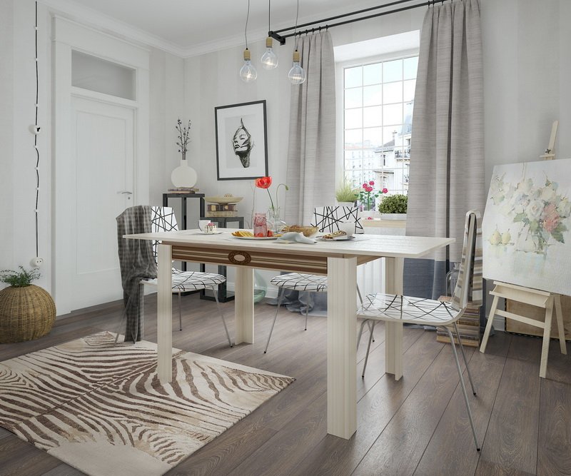 - Обеденный стол раскладной Гермес 1 дуб млечный/венге