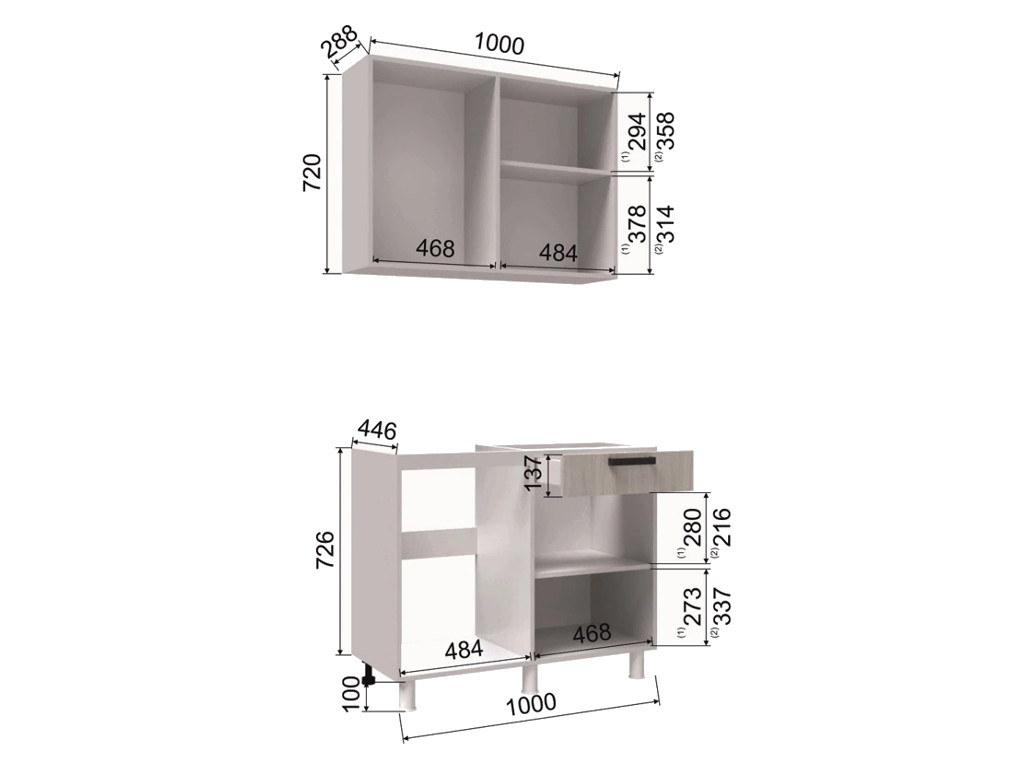 - Высота верхних шкафов, мм 720