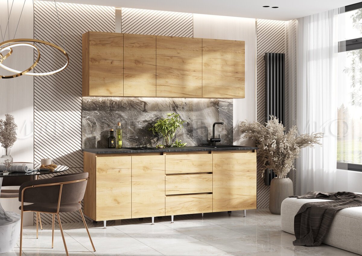Кухня Челси 2000 мм Компановка №2 Дуб Крафт (Кастилло)