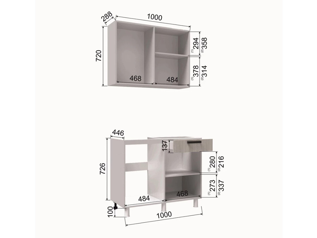 - Высота верхних шкафов, мм 720
