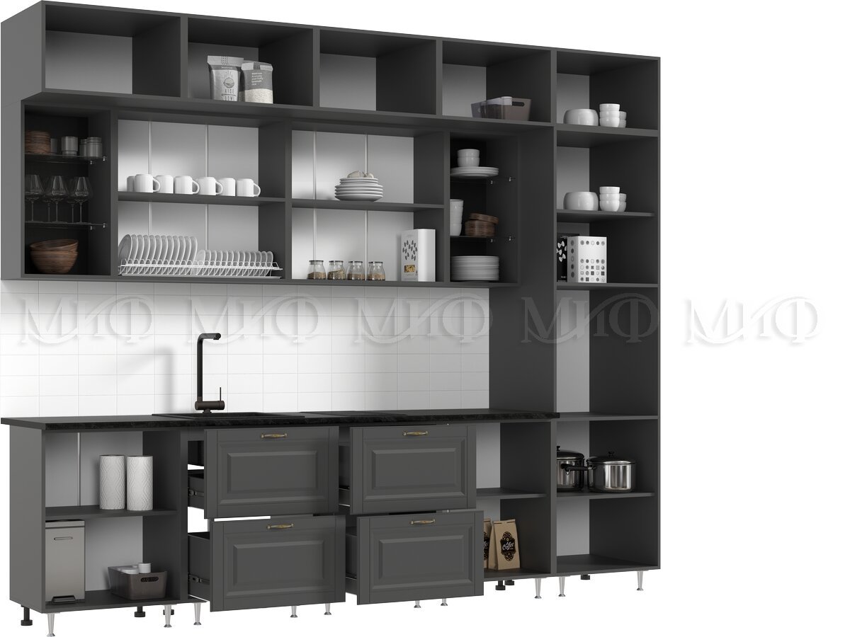 - Кухня Престиж 3000 мм Компоновка №2 Графит софт/Прайм орех