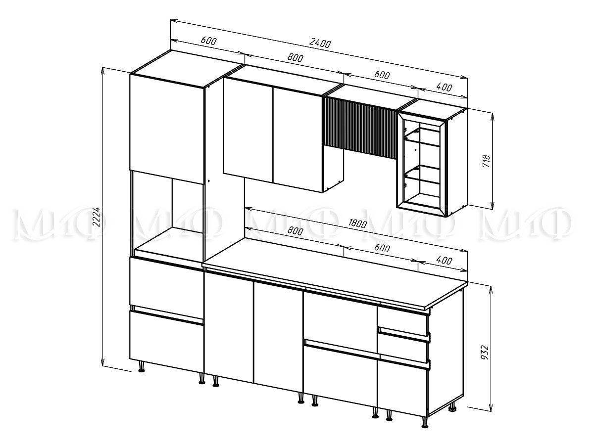- Кухня Техно-6 2400 мм Графит/Атлантик софт