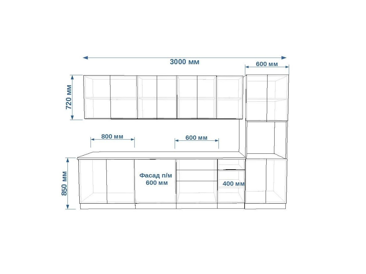 Кухонная мойка, стеновая панель, посудосушитель, планки для столешницы в комплект не входят.