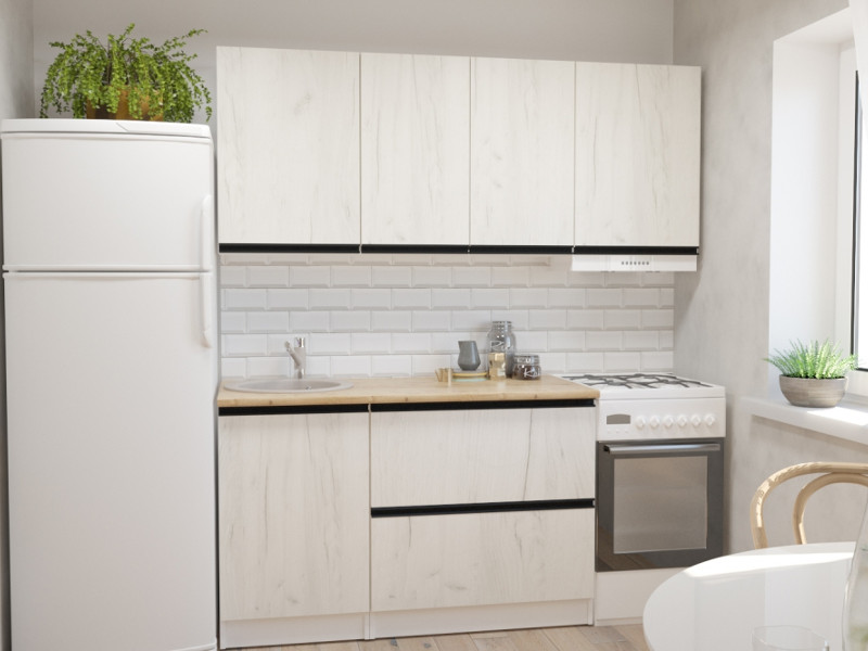 Мойка, смеситель, стеновая панель и посудосушитель в комплект гарнитура не входят.