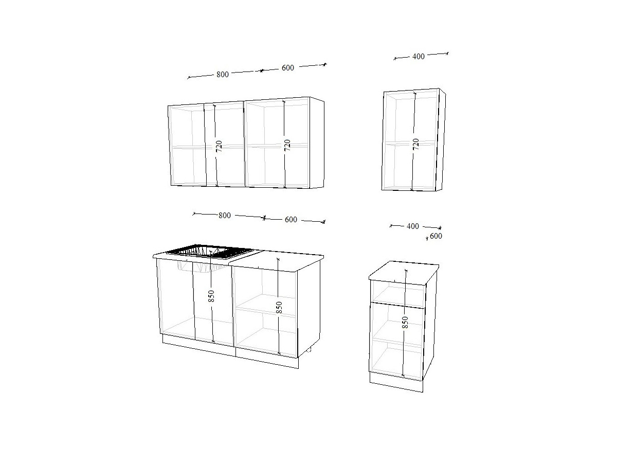 - высота верхних шкафов 720 мм