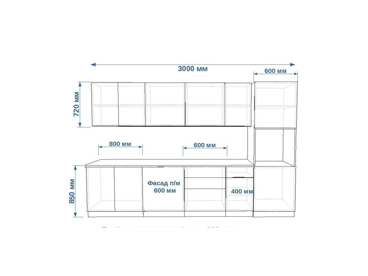 - высота верхних шкафов 720 мм