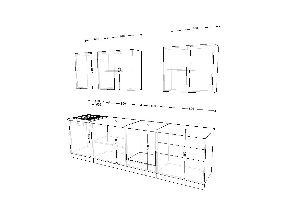 Кухонная мойка, стеновая панель, посудосушитель, планки для столешницы в комплект не входят.