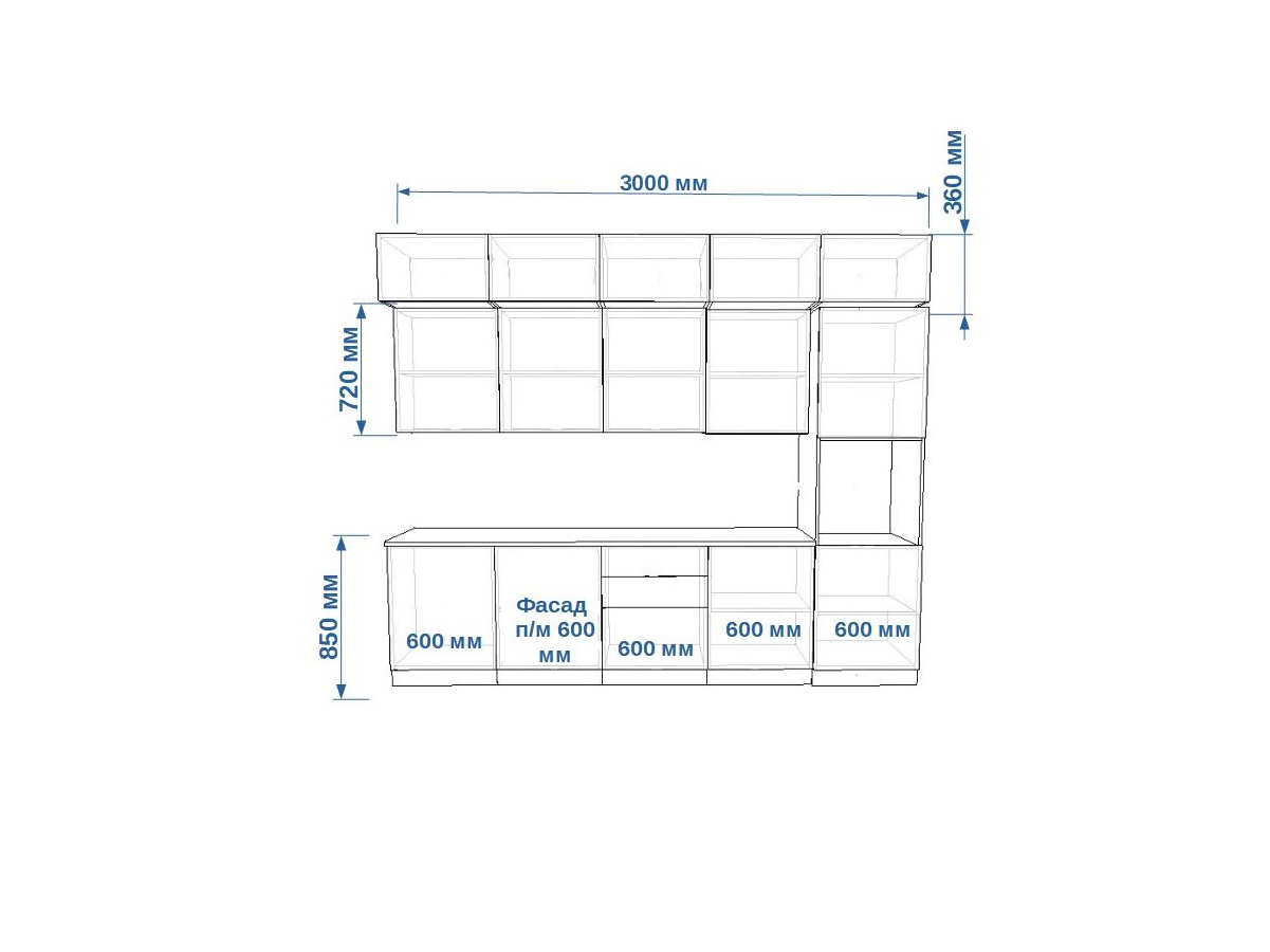 - Кухонный гарнитур арт 20 Фаска Обсидиан Тальк 3000 мм