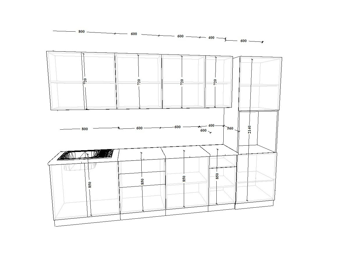 - высота верхних шкафов 720 мм