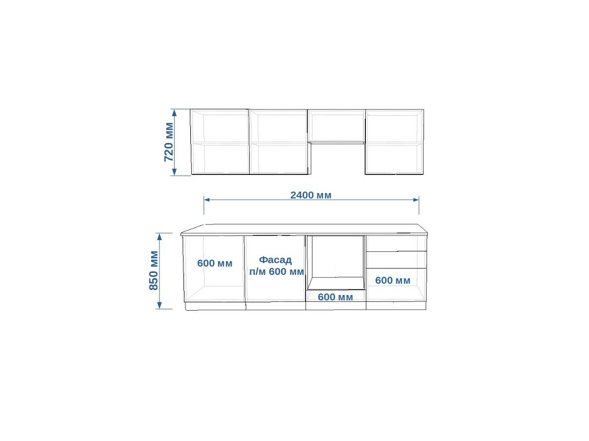 - высота верхних шкафов 720 мм