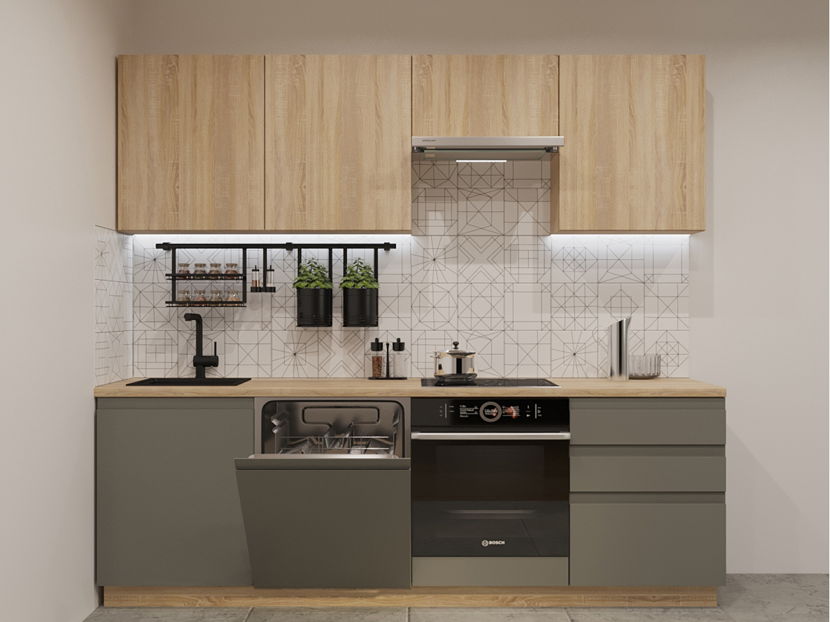 - Кухонный гарнитур арт 40 Лайн Дуб сонома Обсидиан 2400 мм