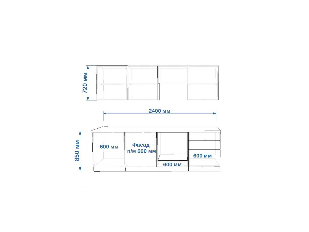 - высота верхних шкафов 720 мм