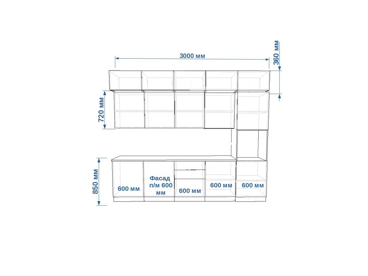 Кухонная мойка, стеновая панель, посудосушитель, планки для столешницы в комплект не входят.